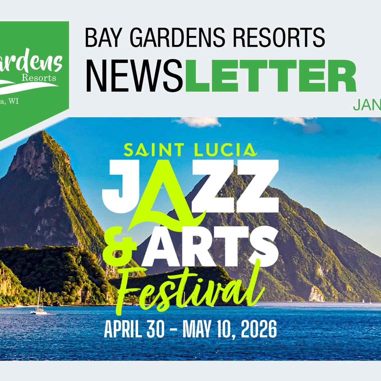 Saint Lucia Jazz & Arts Festival 2026 Officially Launched, Forever Starts Here: The Ultimate “I Do” at Bay Gardens Resorts, Red Romance: The Perfect Valentine’s Escape at Bay Gardens Resorts, Spa Feature - Detox Sea Scallop Renewal, Tour Feature - Aerial Tram Tour and more.